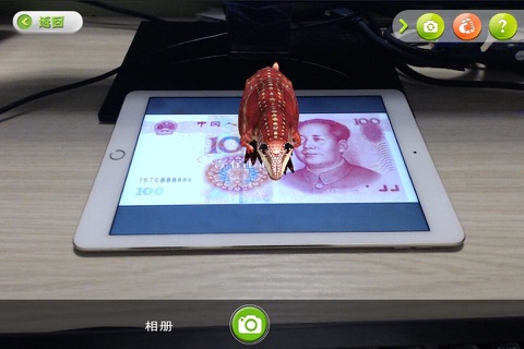 召唤神龙:扫100元人民币或者身份证背面,召唤恐龙,开启摇一摇功能可以换恐龙,还可以拍照分享给你的朋友们!