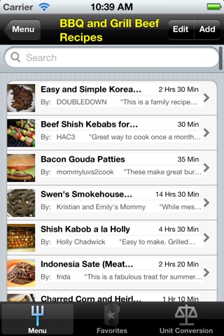 Some of the bbq and grilling recipes categories included in the app are: