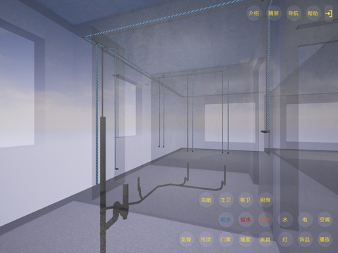 迪咖科技运用自主研发的三维虚拟现实技术,真实展示了水电管线、龙骨以及项目方案的施工过程。