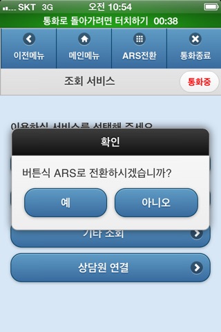 - 통신상태가 원활하지 않은 경우 화면서비스를 제공하지 않고 버튼식 ARS로만 서비스를 제공합니다.