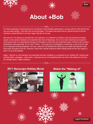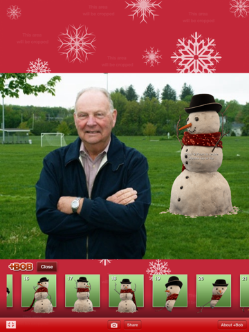 Add Bob Brr the snowman to your photos. Start by taking a picture or choosing from your photo library. Then pick your favorite Bob pose from the over 20 included.
