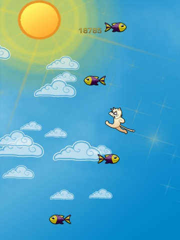 Cat UP! is an addictive jumping game. You may go up across the sky jumping on fishes and spines. Be careful NOT to fall down or TOUCH water, cats doesnt like water, you know. Taking the balls of wool (bronze, silver and gold) earn extra points and a mega jump!