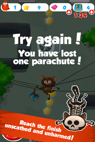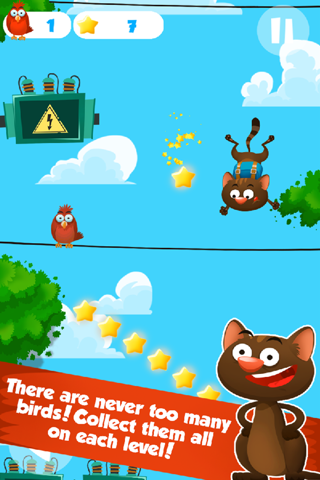 Start a flight with a cat and collect stars, which you can then exchange for superpowers -- they will help you win and move on to the next level.