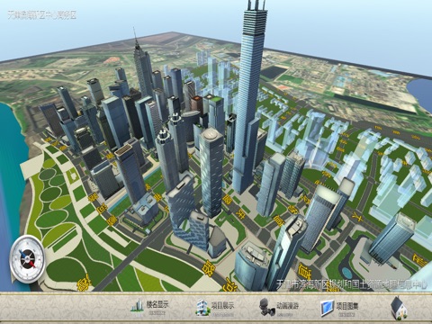 中心商务区三维演示系统将响螺湾、于家堡地区三维立体化,建立了包括地理信息、楼宇信息等数据资源库,是全方位展示中心商务区的一个重要平台。