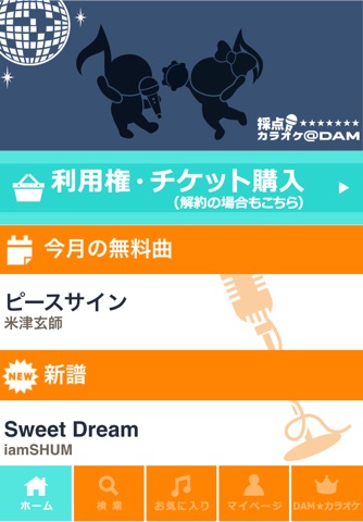 毎月のアプリ起動でもれなく全員に好きな曲を自由に選んで無料で歌える「フリーチケット」をプレゼント中です。その他にも期間中何度でも自由に歌える無料曲も毎週更新中!早速アプリをインストールして、「DAM」の高品質な採点カラオケを楽しもう!