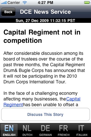 Take the European and worldwide drum corps news of the Drum Corps Europe website with you on the go. Includes drum corps, color guard and indoor percussion news. Available in five languages: English, Dutch, German, French and Italian. Are you a drum corps fan? Then this the iPhone app youve been looking for.