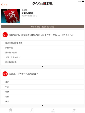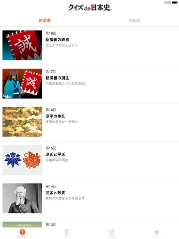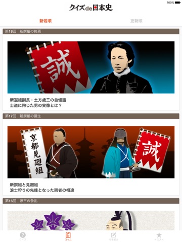 日本史クイズに挑戦しながら、解説で学んで、さらにコラムを読んで、日本史を深堀りするクイズアプリです。