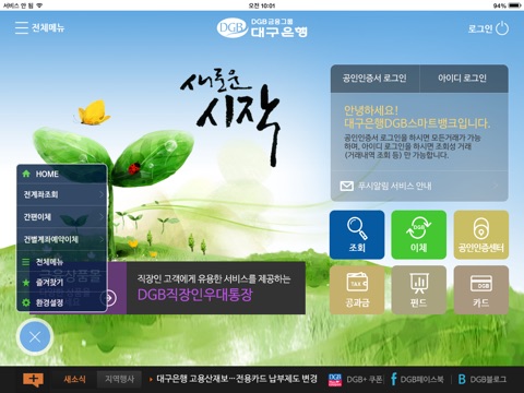 간편하고 빠른 서비스를 원하시면 아이M뱅크를 설치하시고, 다양하고 알찬 서비스를 원하시면 DGB개인뱅킹을 설치하십시오.