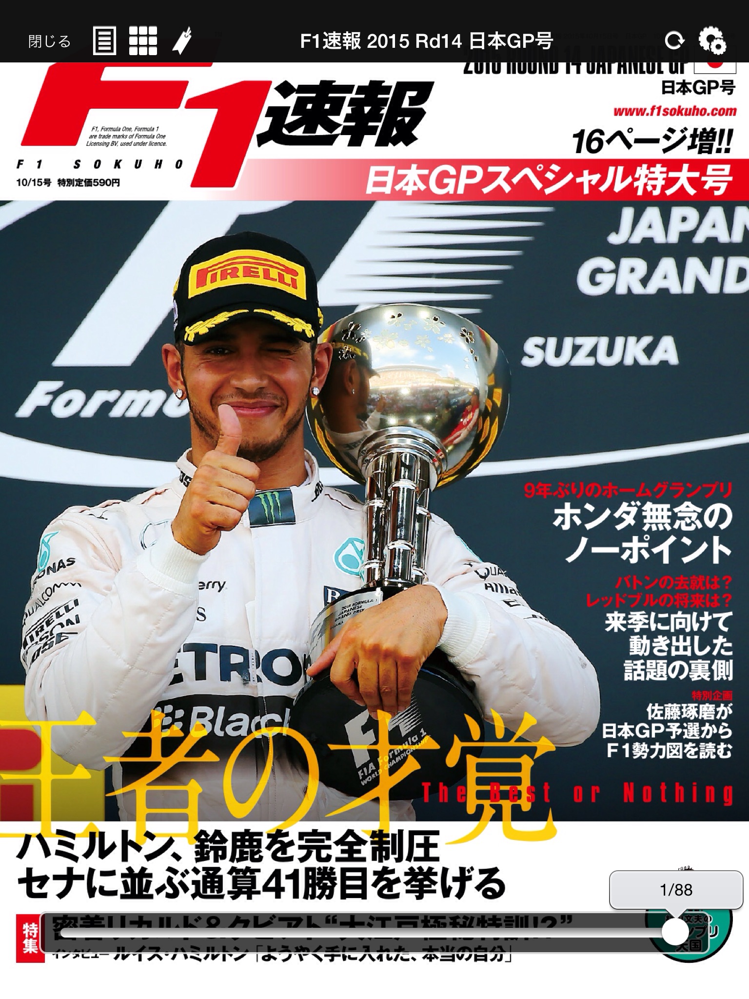 F1の持つ多様な世界に触れることができる、それがF1速報。巻頭巻末を飾る速報ページで、臨場感と詳細なデータを提供。