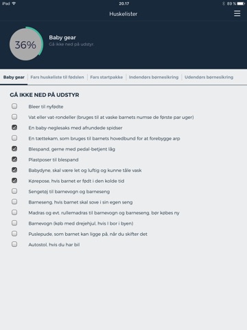 • Tjeklister til alt fra babyudstyr til børnesikring