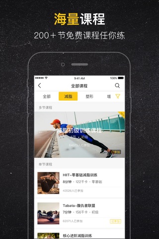 - 不同时长的课程,匹配各种健身场景,支持离线训练,随时随地开启训练模式;