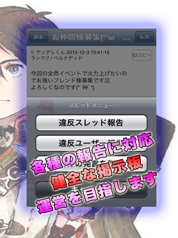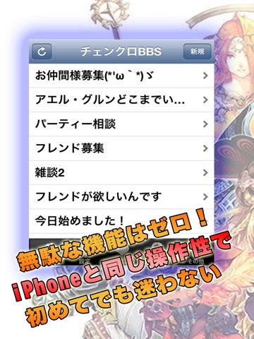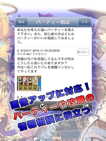 このアプリはチェインクロニクルの攻略情報を交換したり、フレンド募集や雑談ができる掲示板です。