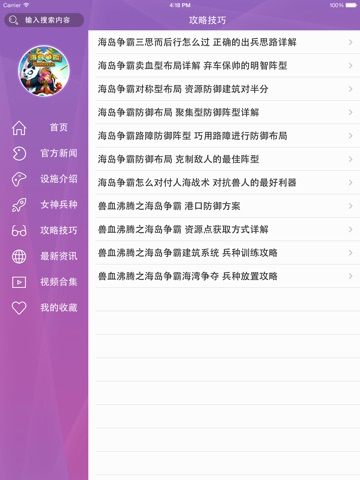 《海岛争霸》是一款塔防战争手游。游戏用Unity3D打造将轻联机互动与逆塔防PVP玩法结合,加入多重经典特色玩法:海岛攻防征战,全球同服,自主修路攻防,独创女神系统,为您开启精彩而激情的海岛之旅行!本攻略有通过官方新闻来了解每一个活动,介绍了游戏的防御设施、军事设施、资源设施,以及各大兵种和女神,更有攻略技巧来帮助玩家。还有各种视频来满足玩家的观感。