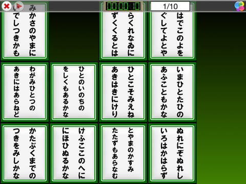 ゲーム画面では、取り札が画面全体に表示されますが、拡大/縮小できますから、お好みでゲームをして下さい。