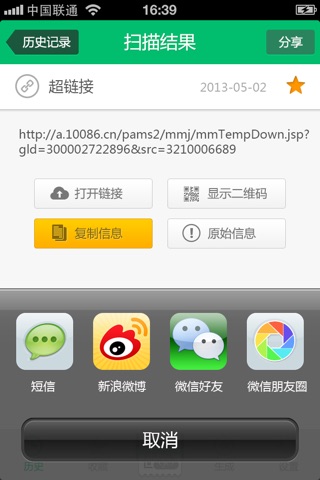 【历史记录】完成扫描的超链接和文本的信息记录,帮助您快捷找到最近扫描的信息记录。