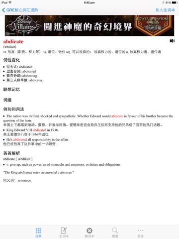 新增千余条高频词,全面收录GRE核心词汇,提供精准的单词释义,并配以大量经典例句,结合语境加深考生对单词的记忆。离线免费下载使用,并附有详细单词跟读发音及词语解释,可重复听读。