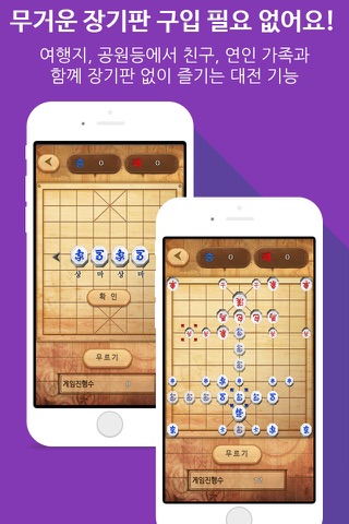 고급스러운 목재 표현을 적용한 리얼한 재질의 장기판과 기물 적용을 통해 생생한 정통 장기 게임을 그대로 느끼실 수 있습니다.