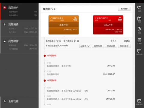 广发移动银行全面升级,引入全新界面设计、优化操作体验,即时掌握账户资金情况、了解个人月度消费情况、轻松打理个人财富,通过最清晰的信息呈现、最简便的操作流程,为您提供最具特色的移动金融服务七宗最: