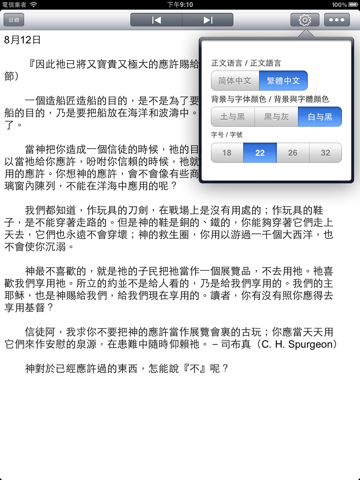 *可設置背景和字體顔色,字體大小,內容語言(簡體或繁體)