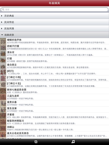 "Chinese Memory - New Year Pictures" is an application developed by the National Library of China to show traditional Chinese cultural. New Year pictures are a favorite painting by our people. These pictures mostly have clear lines and bright colors. Its content is often to good luck, good things or festive theme of folklore stories and reflects the peoples good wishes. For the convenience of readers to enjoy the special resource, we launched this application, including the pictures and description.