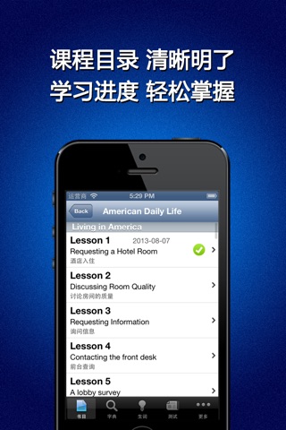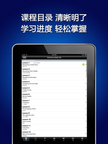 《美国生活英语》提供了进度管理, 时间管理, 每本书, 每个课程, 每个生词都有学习进度, 学习时间, 精确掌控学习进度.