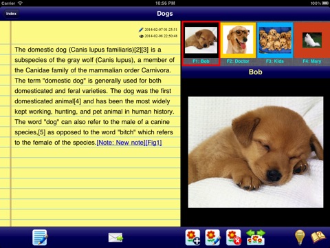 Everything in GraphicNotes can be easily managed and defined. You can get images from your iPad photo album, from the Internet, from the existing GraphicNotes image repository, and from other sources. Original images can be easily scaled and cropped to form a suitable figure view for specific purposes and perspectives. This version supports multiple languages, and you can even customize GraphicNotes to display in your "self-defined" language. Notes can be exported for sharing and/or backup purposes. Exported notes can be imported to any another iPhone/iPad!