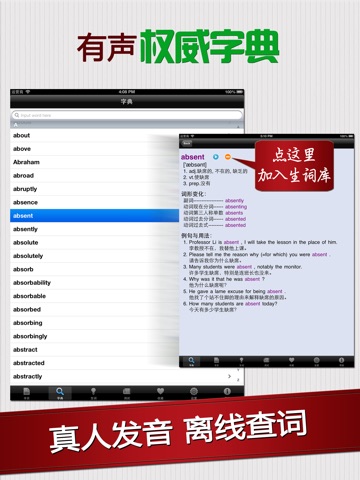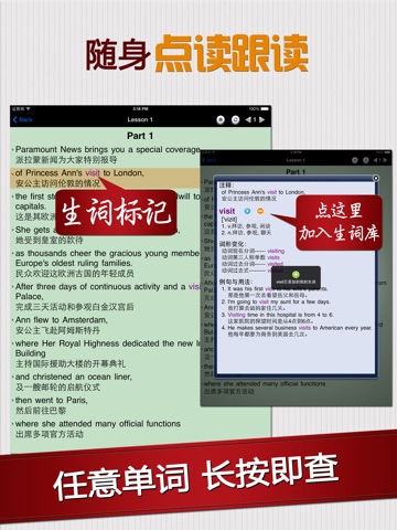 《罗马假日》的每个句子都有标准的真人发音, 英汉对照. 每个英文单词都有详细的解释, 音标, 发音以及例句用法等, 在阅读的时候只需轻轻一按, 即可查阅.