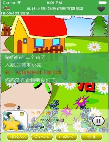 有声故事-宝宝学讲故事是为宝宝提供儿童故事的文字、语音同步的应用。可以让宝宝在听完故事后自己根据理解录制自己讲解的故事。对儿童的口语表达、文字理解有很好的学-