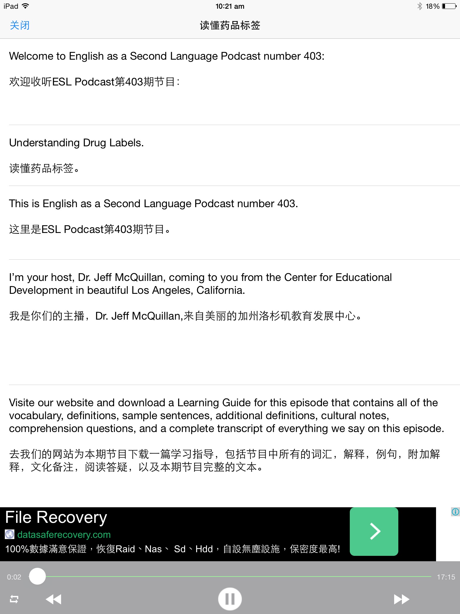 *在这里——每段英文对话,每个英文句子,每个英文难词都能找到中文释义,让你学习起来倍感轻松!