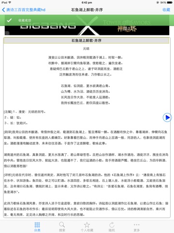 让少年儿童从小阅读唐诗,不仅可以陶冶情操,也可以从中汲取养分,开阔他们的视野,提高他们的文学修养及审美水平。本应用中的唐诗根据诗意配有精美的彩色图画及音乐背景,能帮助少儿读者更好地理解和记忆。