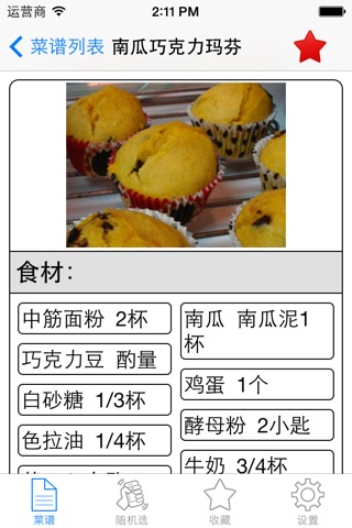 《烘焙食品菜谱大全》支持随机选择,摇一摇手机即可随机选。