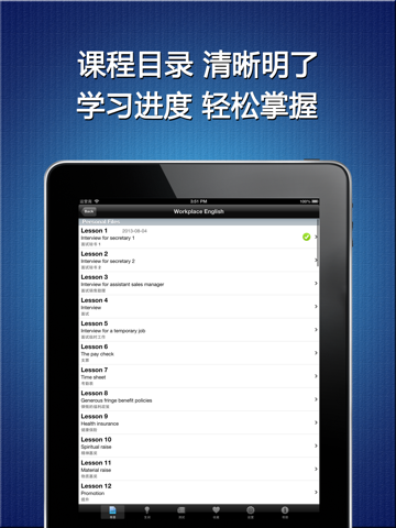 如果您是一个白领,或者即将成为白领,《职场英语》是您必备的手机App。《职场英语》为您准备了很多真实的对话场景,让你轻松掌握职场沟通的语言和技巧。