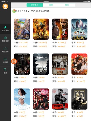 除了查看当前热映电影实时票房,还可以查看: