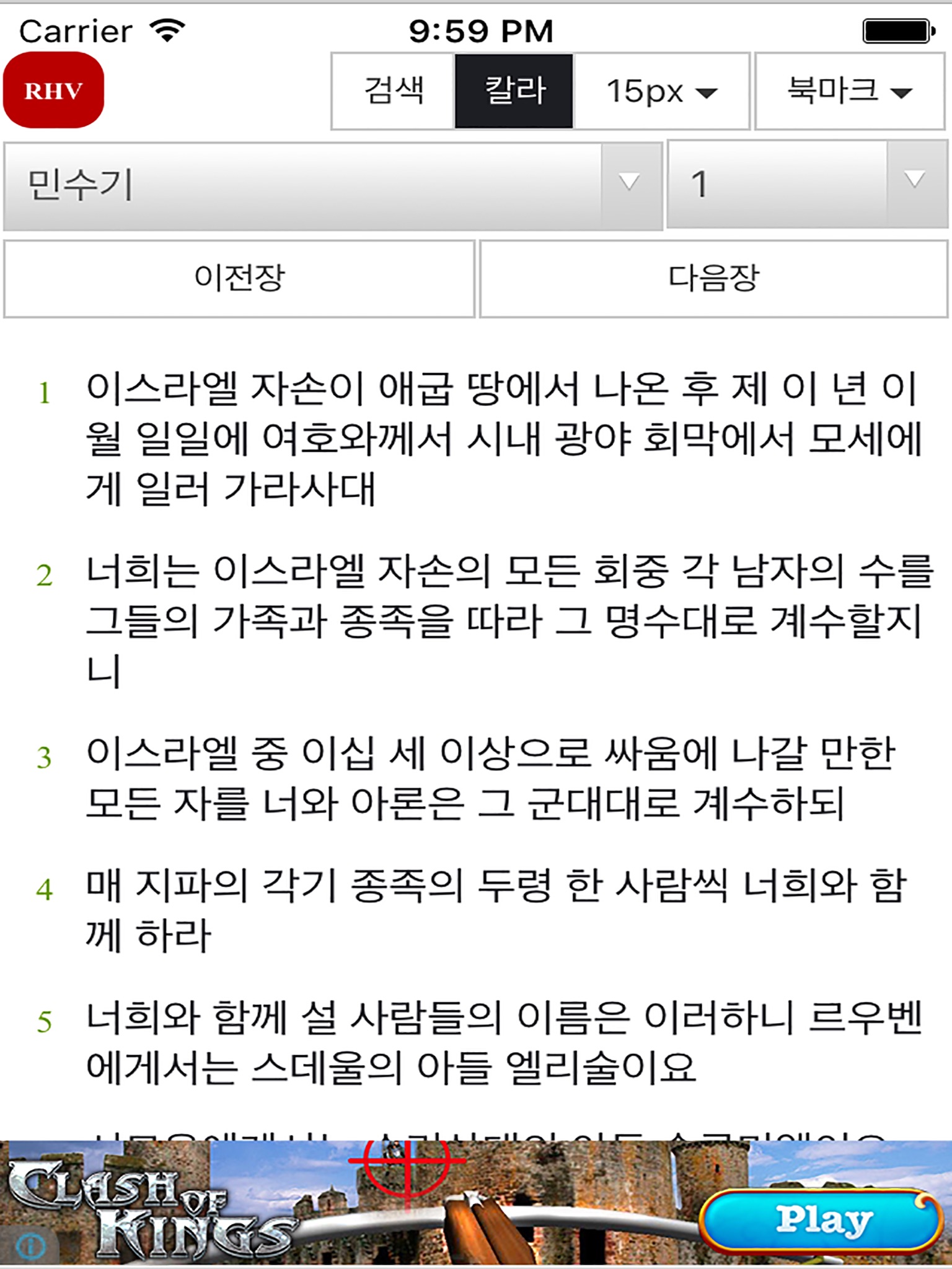 | 1 | 성경 - 개역한글 | Korea | #4 |