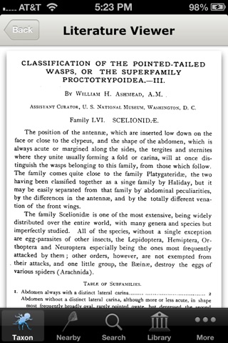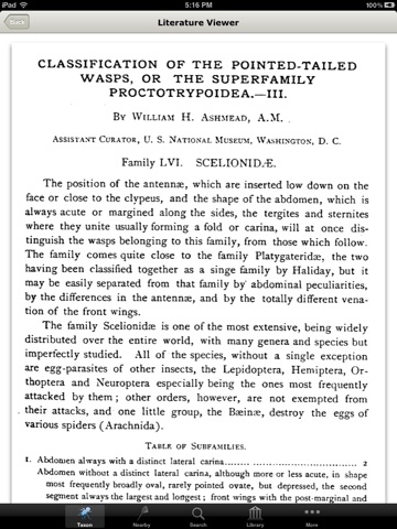 Need to find an article about a fire ant (Solenopsis) that was recently described while you were visiting a collection? Open up the HOL app, search for "Solenopsis", get a list of all the articles that deal with this genus, and view the article right from your iPhone or iPad. You may even save the article to your local HOL library to read the original description of the new species on a flight when you do not have WiFi or cellular access. The enthusiast may also save an article that contains a key to the species of fire ants to provide a real-time identification. With almost 7,000 publications available for download, the paper youre looking for may be at the palm of your hands.