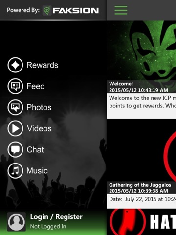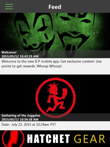 App based on the Band: Insane Clown Posse. This app will blow your mind with exclusive content not available anywhere else! Its packed with, photos, videos, the latest news, live chats with ICP, live events, and more! Earn points the more you interact and get some Juggalo swag you cant get anywhere else.