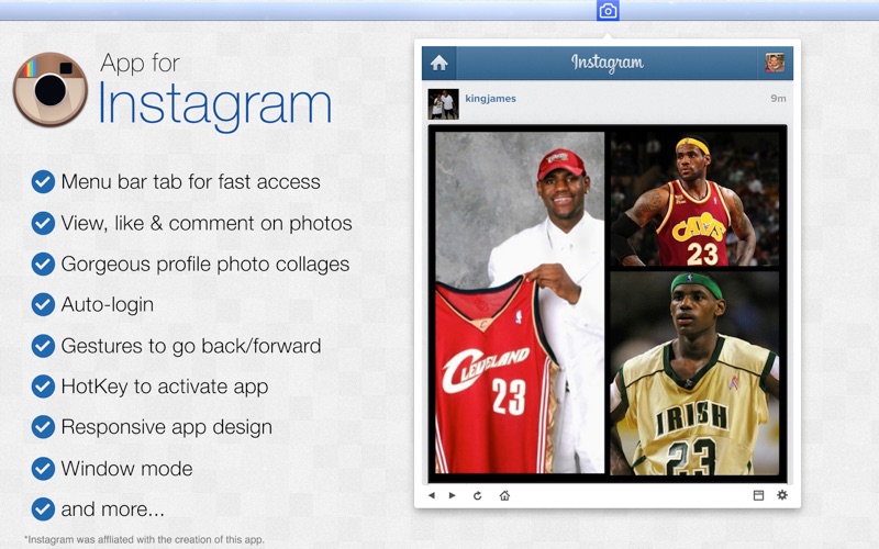 App for Instagram - App with Menu Bar Tab & Window Experience - Its About Time at Mac App Store analyse