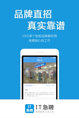 视频面试,当天上班!基于地理位置,寻找附近靠谱的好工作或人才,和企业老板、店长直接手机面试,最快当天上班!急招人、急找工作的必备神器!