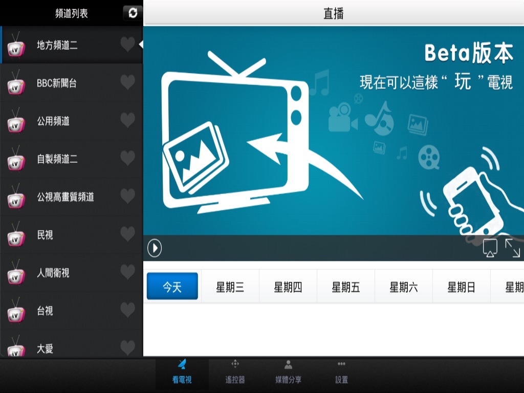 由大大寬頻提供,配合機上盒可在手機或平板上收看電視操作機上盒,以及分享平板的影片、相片、音樂等多媒體到電視上播放。