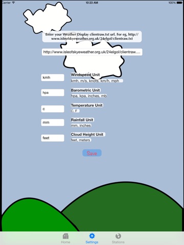 iWS can quickly collect weather data from your Weather Display station clientraw.txt file, and display it in a meaningful summary. You can enter other clientraw.txt locations in the settings screen, so you can watch the weather almost anywhere in the world.
