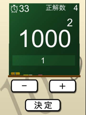10、100または1000の累乗になった数字が表示されていくので、その数字の桁数を答えていく計算ゲームです。