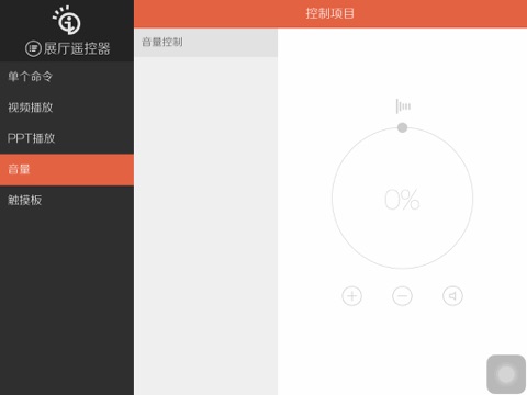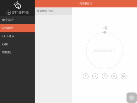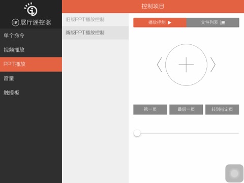 展厅远程控制客户端,用于控制影片播放、PPT 播放,鼠标键盘操作等。