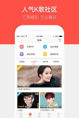 【音乐社区】-全新打造k歌社区,用声音记录你的生活,图文语音让分享更声动,海量歌曲满足你的各种风格,强大的音效、一键修音功能,给你录音棚般K歌享受!