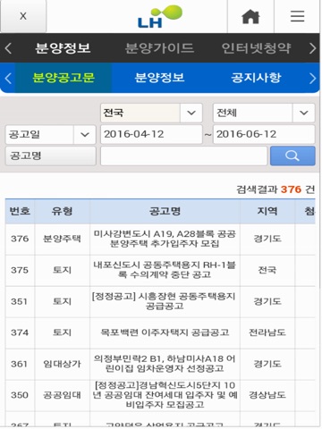 - 토지, 상가, 분양주택, 임대주택, 주거복지에 대한 분양정보를 검색하실 수 있습니다.