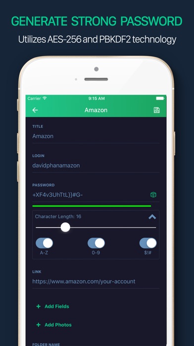 - AES-256 bit encryption keeps your passwords and notes safe