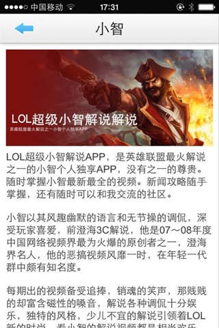 LOL超级小智解说APP,是英雄联盟最火解说之一的小智个人独享APP,没有之一的尊贵。