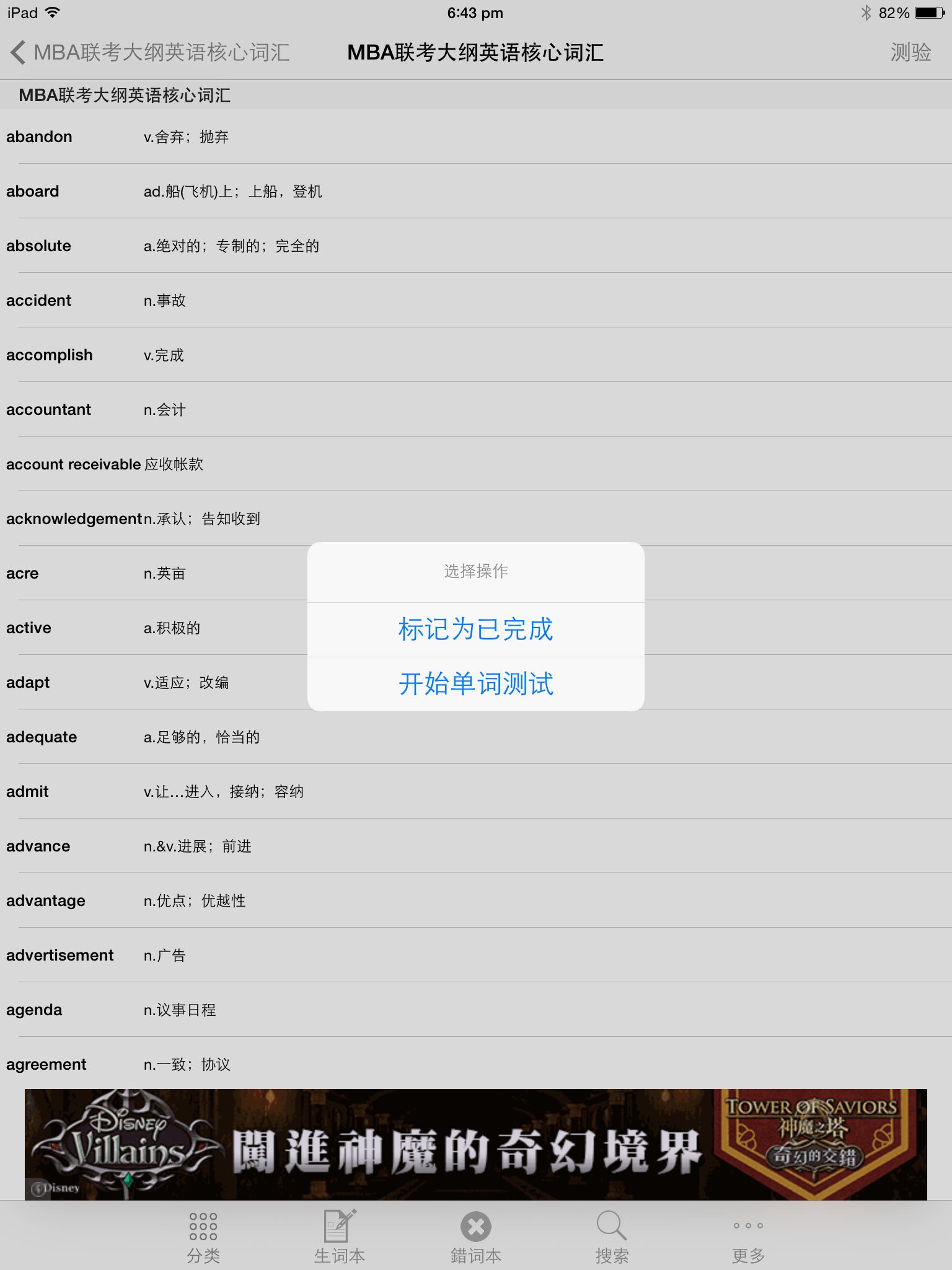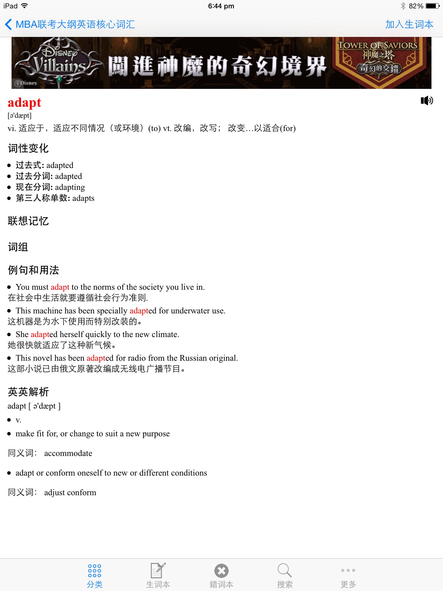 * 生词随时收藏,方便查看