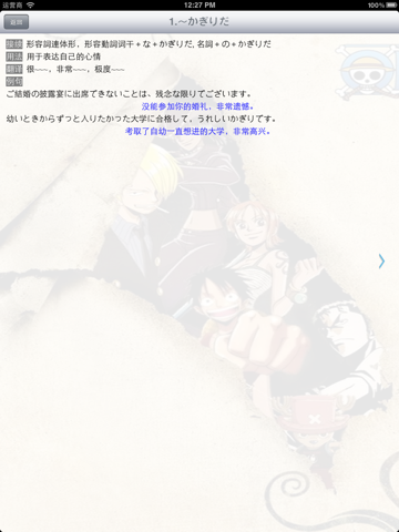 包括了日语N1的106条语法。每条语法包括:接续、用法、翻译、句例。