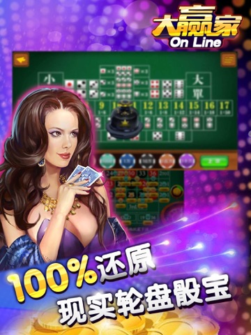 大赢家OL内包含众多超经典的casino games——德州扑克、21点、老虎机、轮盘、水果机、骰子,以及猜拳、扔飞镖、赛车等丰富的酒吧休闲小游戏,让您休闲竞技两不误!近期还将加入更多游戏!竭力为您提供最愉悦的游戏体验!