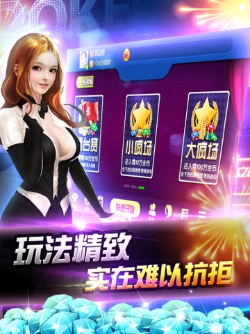 炸金花游戏包含诈金花传统玩法经典场,独具特色的千王场、疯狂场、擂台场,玩家根据自己的实力自由选择喜爱合适的玩场和下注额度,与玩伴斗智斗勇,享受玩牌的乐趣!既有激情满怀,也有平淡愉悦,为休闲放松、调养精神的好游戏!
